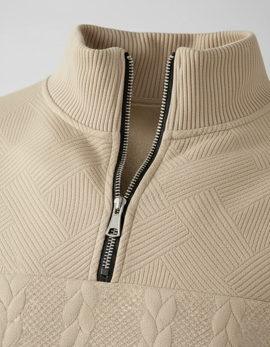 The Fabric: The first thing you will notice is the feel. This piece is made from premium knit fabric, developed to offer the perfect balance between structure and exceptional softness. The fabric has an ideal weight that warms without weighing you down, allowing for comfortable wear in different seasons. Its rich weave is not only visually elegant, but also designed to resist wear and tear and maintain its shape, ensuring that the sweater stays looking new for much longer.